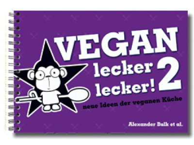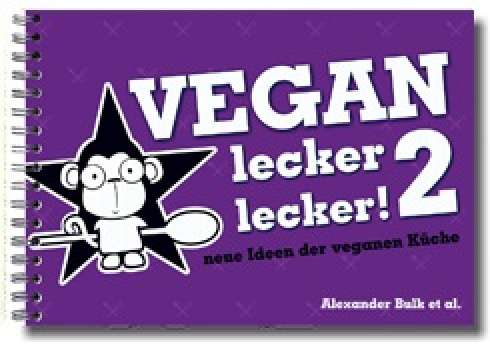 »Vegan lecker lecker! 2« ist der Nachfolger des beliebten und mittlerweile in der 12. Auflage erschienenen »kleinen Grünen«. Seit Ende März ist das Kochbuch von Alexander Bulk et al. erhältlich und kann sich sehen lassen: Es hat auffallend mehr Seiten, kommt diesmal in frischem Lila daher und hat ebenfalls die schon vom Vorgänger bekannte praktische Ringbindung, die das Zufallen beim Kochen verhindert.