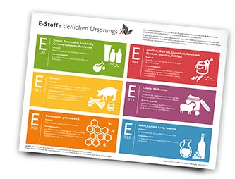 Diese sechs E-Nummern zeigen an, dass ein Produkt tierliche Bestandteile enthält. Auf manchen Zutatenlisten wird nicht die Nummer, sondern die Bezeichnung aufgeführt.