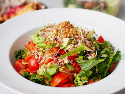 Damit ein Salat von der Beilage zur Hauptspeise avancieren kann, sollten Sie einen gesunden Sattmacher hinzufügen. Hervorragend sind dafür eiweißreiche Lebensmittel wie Linsen, (angebratener) Tofu oder Kichererbsen geeignet, aber auch Vollkornpasta, Reis oder Hirse schmecken ausgezeichnet. Für Fans der Sojabohne ist der Rucola-Radicchio-Salat mit Tempeh genau das Richtige. Natürlich kann der Sattmacher auch zugleich die Hauptzutat sein: Probieren Sie den leckeren Linsensalat mit Spinat und Granatapfel oder unser Rezept für einen einfachen Bohnensalat. Wer Wert auf Rohkost legt oder Lust auf etwas Neues hat, dem legen wir den Linsensprossensalat ans Herz.