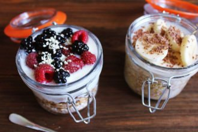 Wenn Sie gerne süß frühstücken, ist das einfache und gesunde Birchermüsli zu empfehlen, welches gut vorbereitet und transportiert werden kann. Das gilt auch für Overnight Oats: Einfach Haferflocken mit einer Pflanzenmilch Ihrer Wahl im Verhältnis 1:2 mischen, über Nacht quellen lassen und nach Belieben mit Beeren, Nüssen oder Trockenobst toppen. Der schnell zubereitete Chia-Power-Pudding-Snack liefert ebenfalls viel Energie für den Tag.