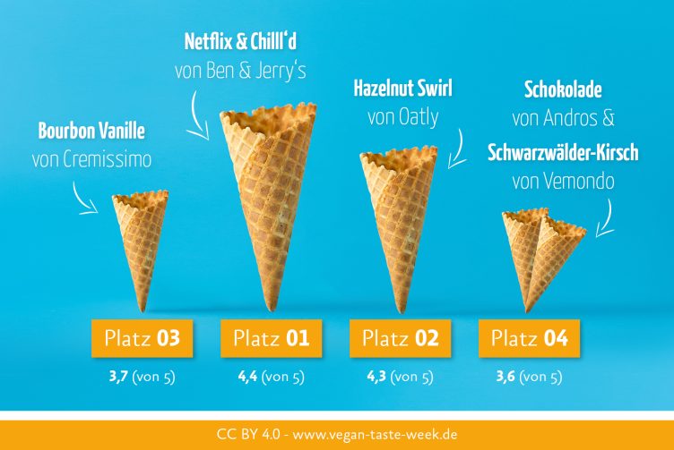 (gekauft bei Edeka) 0,52 Euro 0,52 Euro 0,63 Euro 1,30 Euro 1,69 Euro 1,76 Euro 1,91 Euro Werden Ihnen unsere Testergebnisse beim nächsten Eis-Einkauf helfen oder haben Sie noch ganz andere pflanzliche Eis-Favoriten? Dann teilen Sie diese doch gerne in unserer Facebook-Gruppe »Vegan-Tipps für alle«. Wir freuen uns auf Sie!