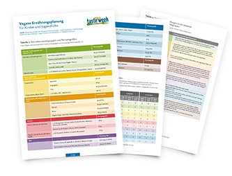 Wer sein Kind vegan ernähren möchte, erhält mit diesem wissenschaftlich fundierten Planungssystem ein praktisches Hilfsmittel an die Hand. Wenn Sie mehr zu veganer Kinderernährung erfahren möchten, empfehlen wir Ihnen unsere Artikel »Vegane Kinderernährung und Beikost« sowie »Vegan schwanger und stillen – geht das?«