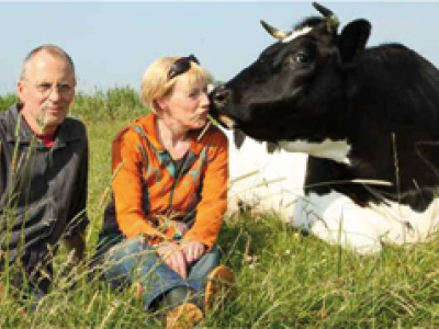 Karin: Noch viel mehr Kuhaltersheime! Wie Jan eben gesagt hat — Tiere kann man nicht besitzen, Tiere sind keine Maschinen. Das muss sich ändern, dass man Tiere überhaupt kaufen, verkaufen, Familien und Freundschaften auseinanderreißen und Leben zerstören darf. Das ist doch pervers. Von heute auf morgen passiert das nicht, das ist uns auch klar. Aber für die nahe Zukunft können wir uns wirklich vorstellen, dass es immer mehr Tierbauern geben wird, die aus dem System aussteigen wollen, weil das ganze Geschäft ja sowieso dabei ist, an die Wand zu fahren.
