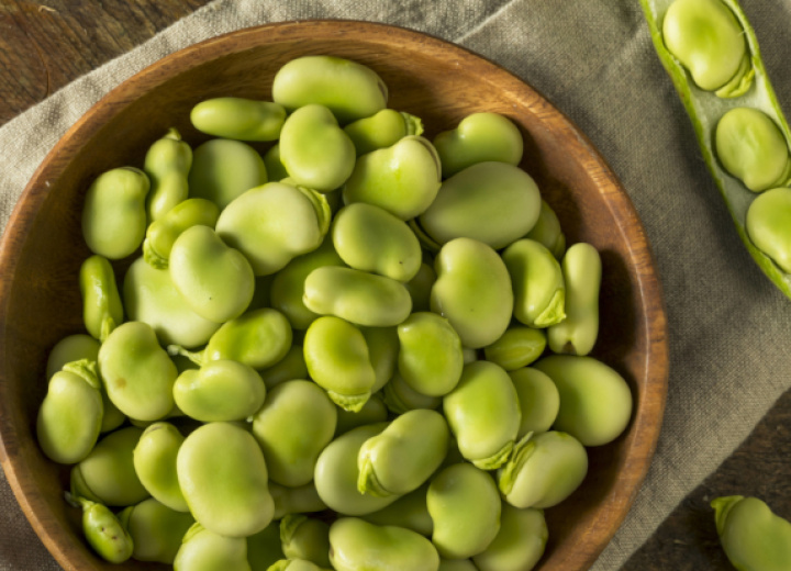 Die frischen Bohnen in reichlich Salzwasser einmal aufkochen, das Wasser abgießen und in frischem Wasser weiterkochen, bis die Bohnen weich sind (ca. 20 Minuten). (Haben Sie getrocknete Bohnenkerne, müssen diese über Nacht eingeweicht werden und dann ca. 1 Stunde kochen.)