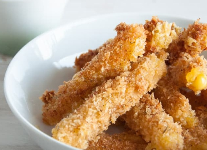 Ausreichend Bratöl in einen kleinen Topf geben und vorsichtig erhitzen. Die Sticks dazugeben, sodass sie vollständig vom Öl bedeckt sind. Einige Minuten frittieren, bis die Sticks goldbraun und knusprig sind.
