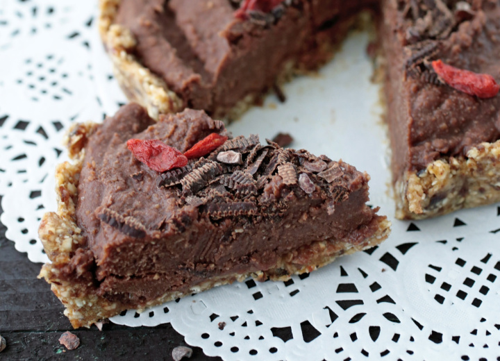 Die Füllung auf den Boden geben und alles für cirka 3 Stunden kaltstellen. Mit Beeren oder Kakaonibs dekorieren und servieren.