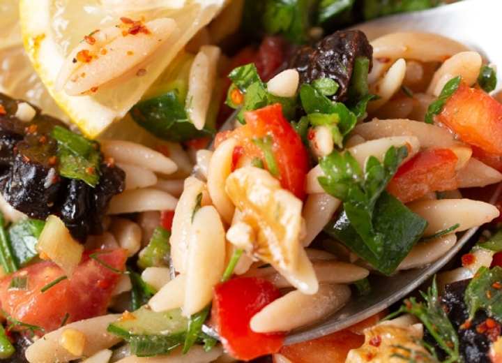 Dieses Rezept für veganen Kritharaki Salat stammt von Healthy