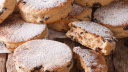 Mehl, Pflanzenmilch, Zucker, Kurkuma, Orangen- und Zitronenabrieb und Vanillezucker zum zweiten Teig geben und wieder kneten. Nach einigen Minuten die Butter hinzufügen und weiterkneten. Am Ende sollte der Teig elastisch und dehnbar sein. Den Teig nun in eine gefettete Pandoro-Backform (alternativ geht auch eine Gugelhupfform) geben und abdecken. Den Teig so lange gehen lassen, bis die Form gefüllt ist. Das kann einige Stunden oder auch einen Tag dauern. Sollte der Teig während dieser Zeit trocken werden, muss er immer wieder mit etwas Wasser bestrichen werden. Sobald der Teig die Form ausfüllt, den Backofen auf 180 Grad vorheizen. Der Pandoro muss nun eine Stunde backen. Damit er nicht verbrennt, sollte er nach etwa 20 Minuten abgedeckt werden. Den Pandoro herausnehmen, abkühlen lassen und mit Puderzucker bestreuen.Buon appetito.