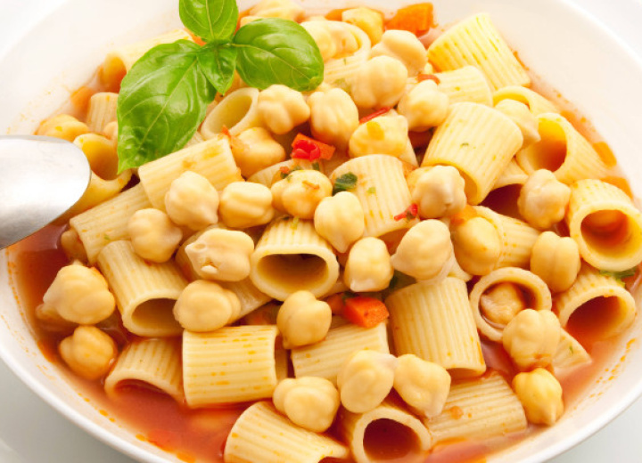 Tipp: Alle Pastaformen gehen natürlich, aber am besten eignen sich Penne, Rigatoni und andere Sorten mit einer Öffnung, die gut Soße und Kichererbsen aufnehmen.