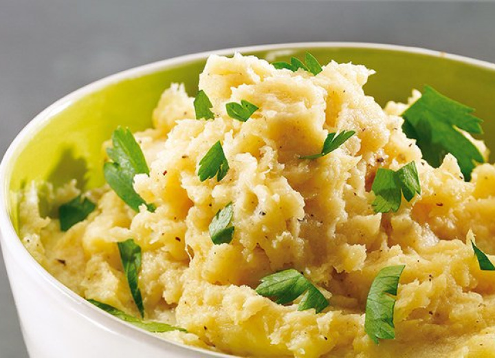 Dann abgießen und mit einem Kartoffelstampfer fein zerstoßen oder im Mixer pürieren, dabei das Walnussöl und eine großzügige Prise frisch gemahlene Muskatnuss untermengen. Mit Salz und Pfeffer abschmecken und servieren.