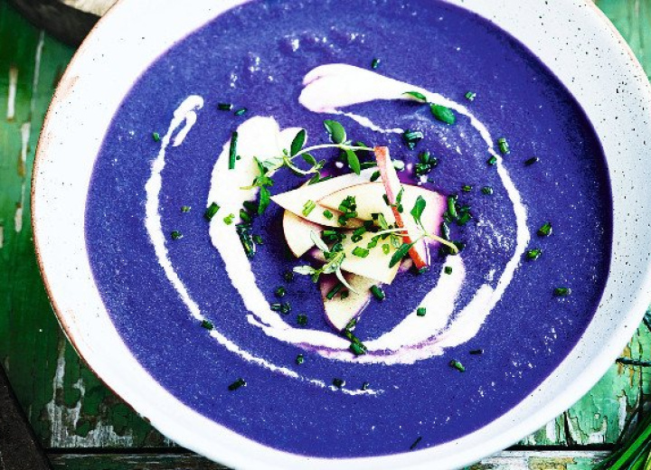 Dieses Rezept für die violette pikante Suppe stammt aus dem Kochbuch »Vegan 100« von Gaz Oakley.