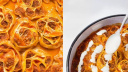Vom Blätterteig 10 Kreise von etwa 10 cm Durchmesser ausstechen. Dabei Ränder einfach zu größeren Stücken zusammensetzen und auch ausstechen. 10 Muffinförmchen mit Hilfe eines Papiertuchs einfetten und leicht mit Mehl bestäuben. Die Blätterteigkreise in die Förmchen legen und leicht andrücken.
