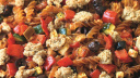 Für die Füllung des Seitanbratens die Trockenpflaumen und die Walnüsse grob hacken. Den Seitankloß zu einem Rechteck von etwa 25 x 35 cm ausrollen und darauf die Füllung mit einem Abstand von 1,5 cm zum Rand gleichmäßig verteilen. Von der Längsseite her aufrollen, die Ränder einschlagen.