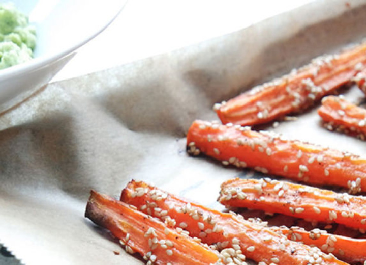 Dieses Rezept für Sesam-Möhren mit Avocado-Dip stammt von dem Blog julie feels good von Julia McCoy.