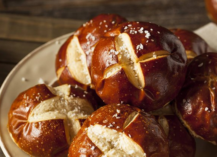 Jeden Teigling eine Minute von allen Seiten in der heißen Lauge sieden, mit einem Schöpflöffel herausnehmen und abtropfen lassen. Nach Belieben verzieren und über Kreuz einschneiden.