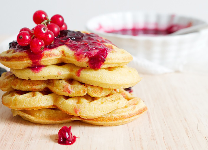 Das Waffeleisen gut einfetten und die Waffeln backen (etwa 2 Minuten je Waffel je nach gewünschtem Ergebnis).
