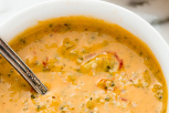 Nun nach Belieben Pflanzensahne, Gemüsebrühe-Pulver, Agavensirup, Zitronensaft und Gewürze hinzufügen, kurz umrühren und noch heiß servieren.