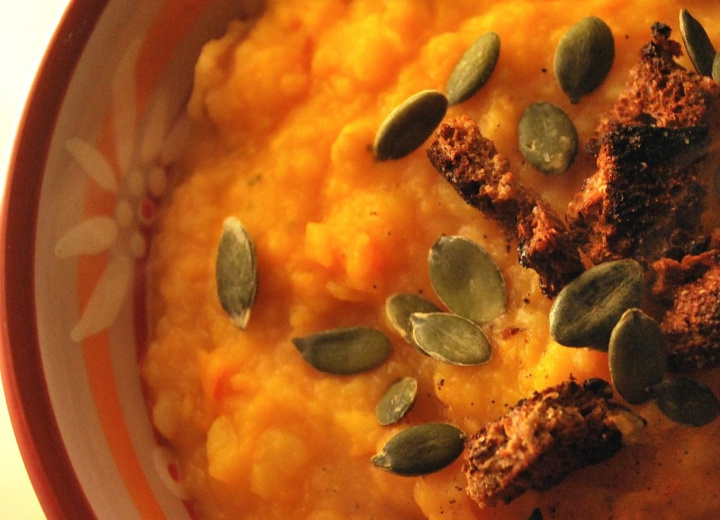 Dieser Zweierlei-Kartoffel-und-Kürbis-Eintopf stammt vom Blog Vegänsch.